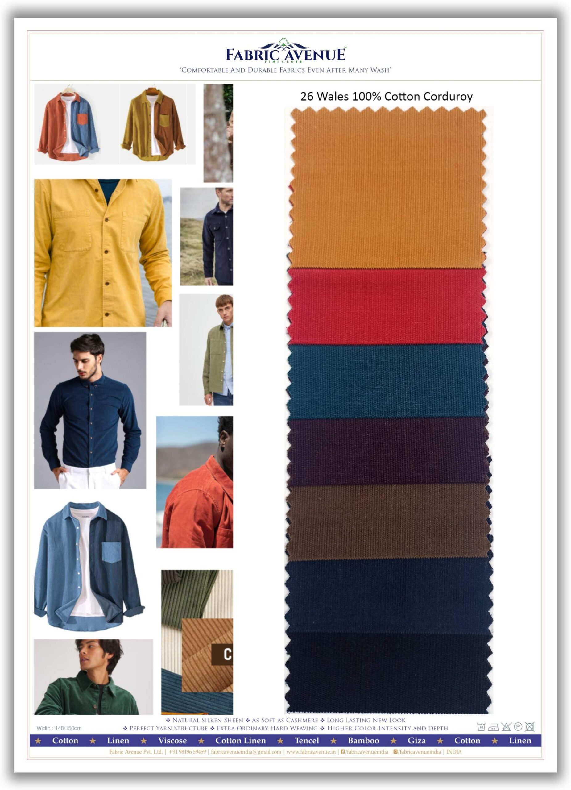26 Wales – 100% Cotton Corduroy Shirting Fabric